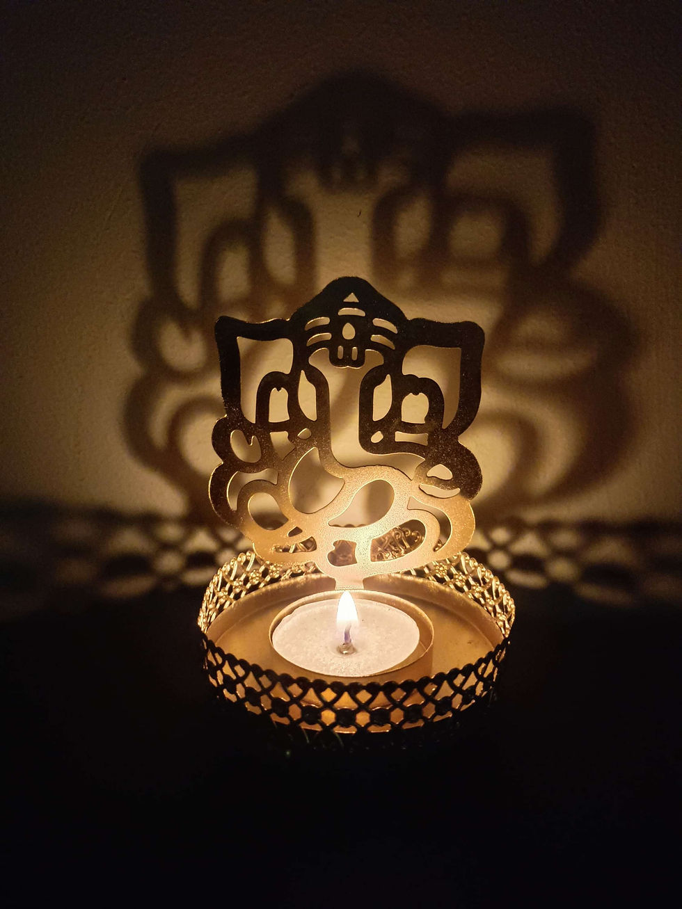 Metal Shadow Saraswati Tea light Holder